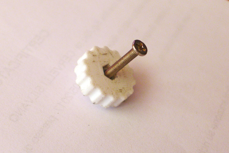 La manopola di sinistra è stata fatta con questo sistema la destra invece con il bulloncino a vista poi coperto con colla a caldo bianca. La manopola di destra è stata stampata con layer 0.1 ed è più rifinita l'altra a 0.2.
