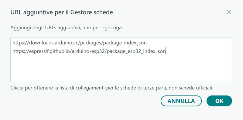 Per poter gestire questo tipo di schede bisogna predisporre l'IDE di Arduino