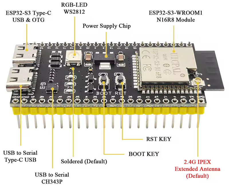 🧩 Esempio completo per ESP32-S3-N16R8/N8R2(puoi impostarli da menu Strumenti uno per uno)
